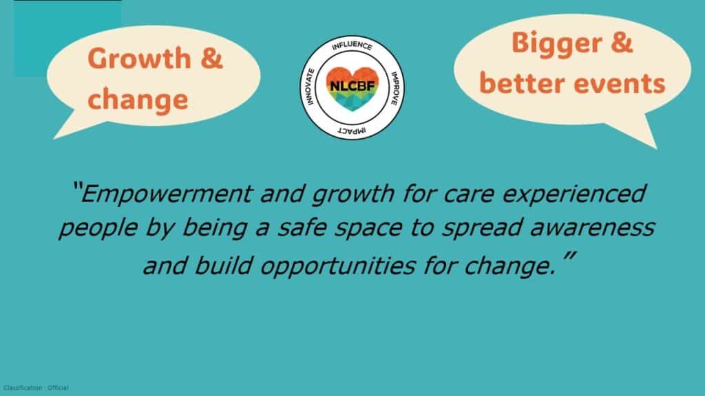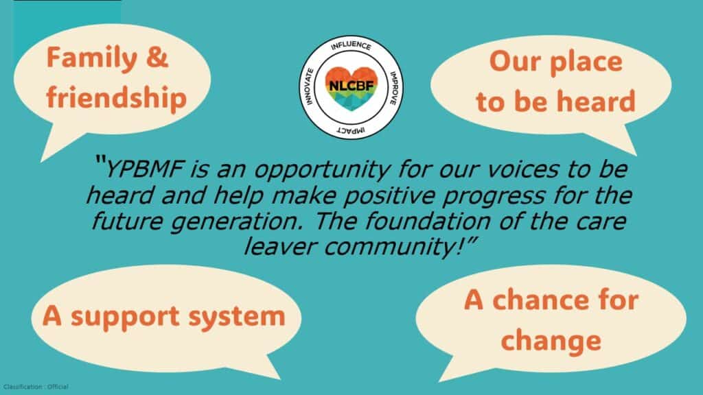 “The stigma is real, society can make us feel that it’s our fault, or that we are just another number – but that is wrong. It makes me think that maybe being care-experienced isn’t that bad when you are part of a community like NLCBF.” Darren, YPBMF Champion.