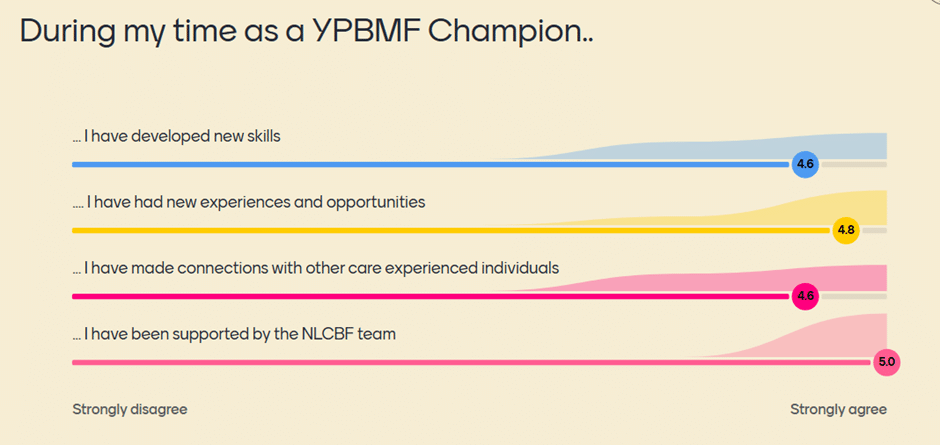 “I have been able to grow my confidence which has made me feel capable of creating a positive impact for care experience.” Alani, YPBMF Champion.