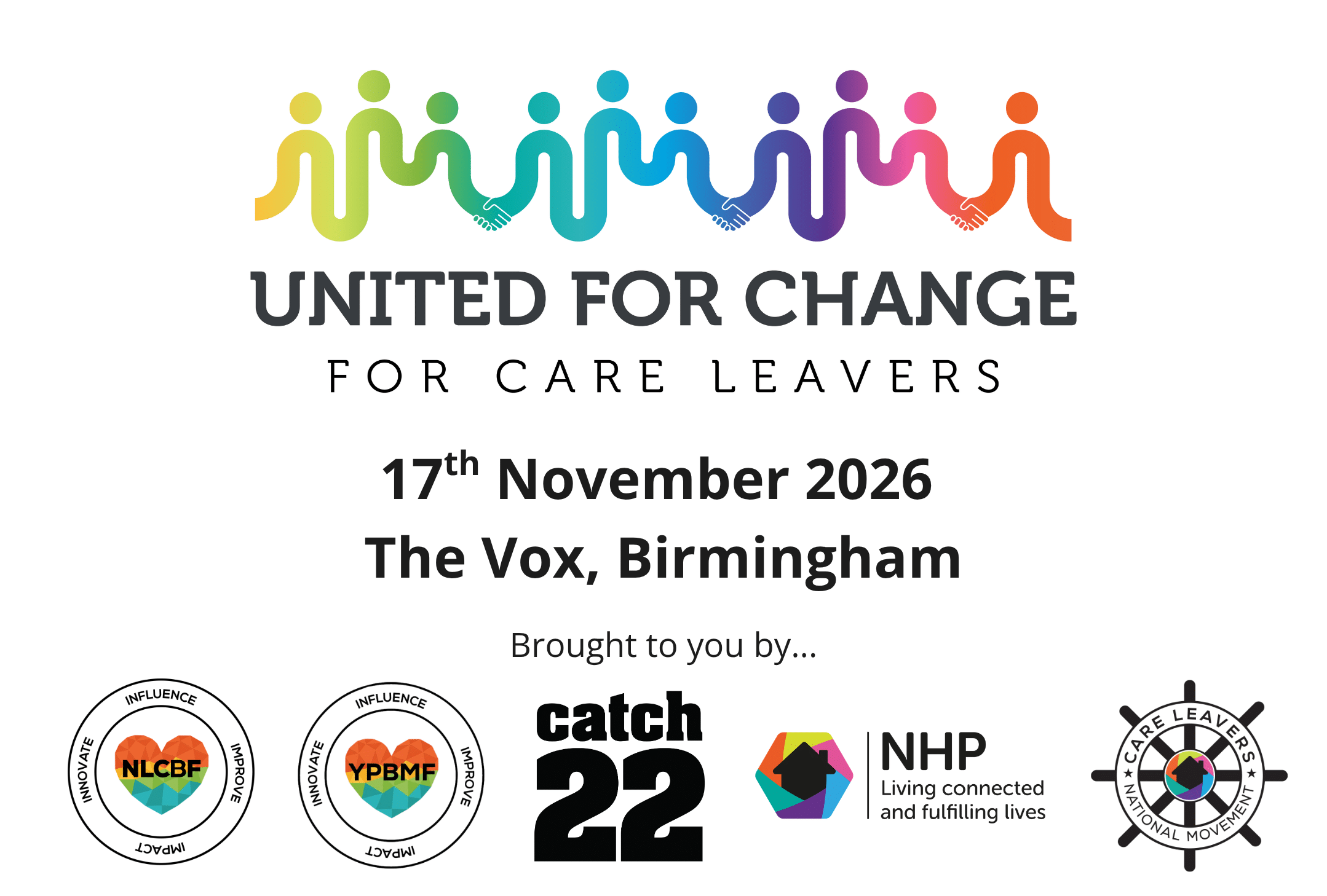 ‘United for Change for Care Leavers’ is coming to town on 17th November 2026! Co-hosted by ourselves, The National House Project (NHP), and Care Leavers National Movement (CLNM), we’ll be taking over The Vox in Birmingham to bring you a powerful day of cross-sector collaboration that will amplify the voices of care-experienced individuals like never before.